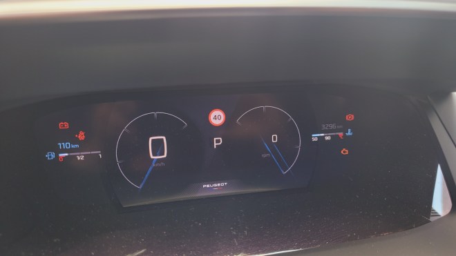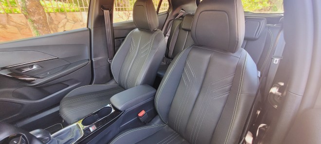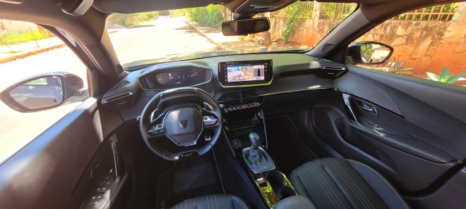 Essa posição combina com o pequeno volante e o painel que é visto por cima do mesmo, recurso chamado de I-Cockpit.