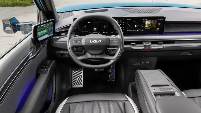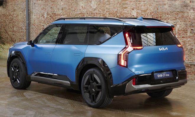 O Kia EV9 mede 5,01 metros de comprimento, 1,98 metro de largura, 1,7 6 metro de altura e possui uma distância entre eixos de 3,10 metros. As rodas são de liga leve de 21 polegadas.