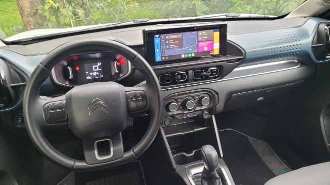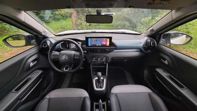 Multimídia – Contrastando com essas simplificações, o multimídia do C3 é muito bom, o mesmo disponível para o Peugeot 208, porém, com um grafismo próprio da Citroën que utiliza fundos coloridos e ícones maiores, facilitando sua operação.