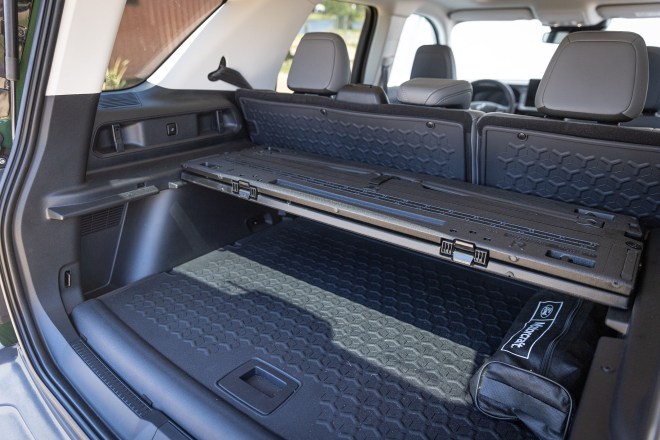 A caçamba da Rampage comporta 980 litros e, em seu tanque de combustível, 60 litros. Pesando 1.951 kg, a versão a diesel pode transportar 1015 kg de carga útil e rebocar 400 kg.
